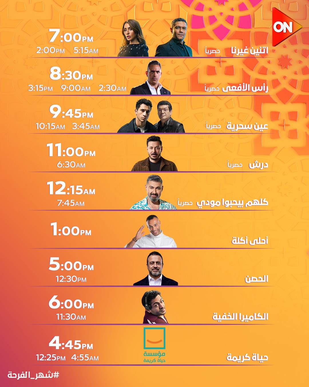 بهذا نكون قد نشرنا مواعيد عرض مسلسلات رمضان 2026 على قناة ON و ON Drama، الفن لايف يتمنى لكم شهر صيام مقبول وتقبل الله منا ومنكم صالح الأعمال.